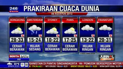 Berita | • 17 July 2025 • Cuaca Makassar-Ambon Kamis Besok: Hujan di Tiga Ibu Kota Timur Prakiraan Cuaca Tiga Ibu Kota di Timur Indonesia: Hujan Ringan Mengguyur Jayapura, Ambon, dan Makassar...